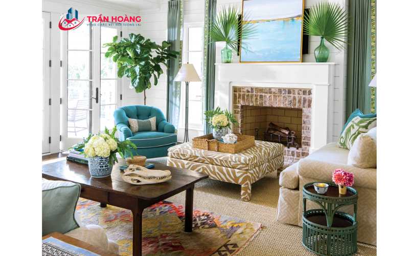- Rèm cửa và mành che: Những loại rèm cửa được làm từ vải mềm mại sẽ là điểm nhấn thú vị cho không gian, vừa giúp điều chỉnh ánh sáng hiệu quả vừa tạo sự thoải mái cho phòng khách.